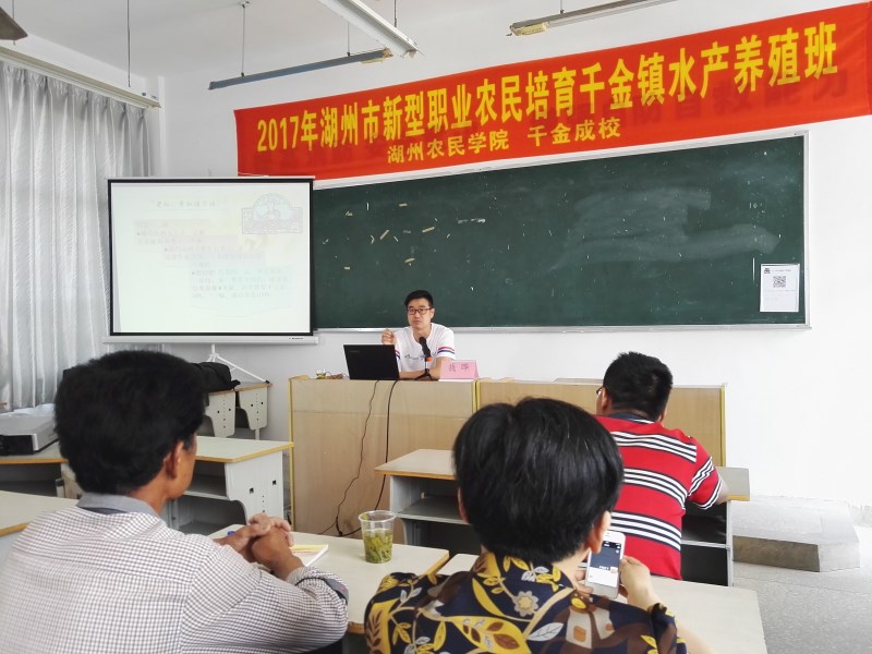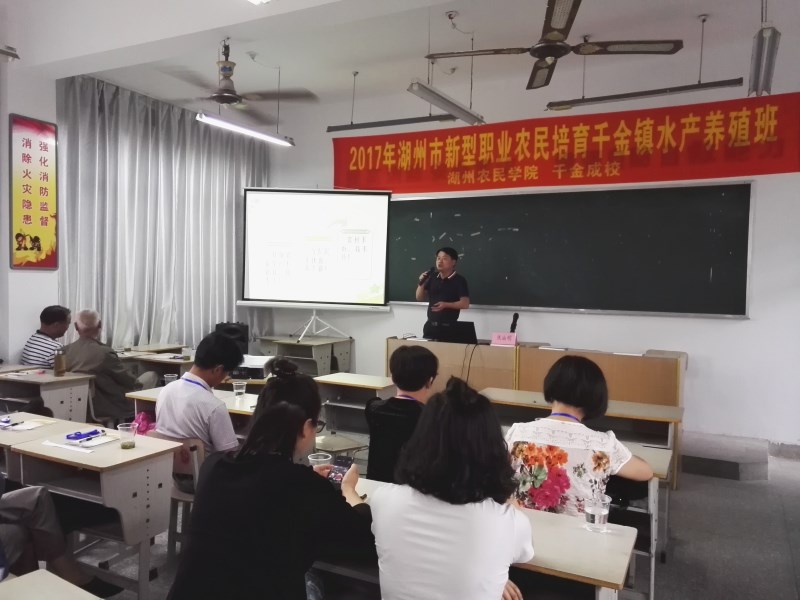 按照千金镇第十五次党代会提出的“建设‘宜居、宜业、宜游’的生态农业特色镇、打造品质千金”的目标,千金成校积极开展符合实际的培训,助力“生态农业特色镇”建设。5月23日,湖州市新型职业农民培育千金镇水产养殖班在千金成校顺利开班。该班第一阶段的培训为通识培训,为期3天。33名本镇水产养殖户参加了培训。