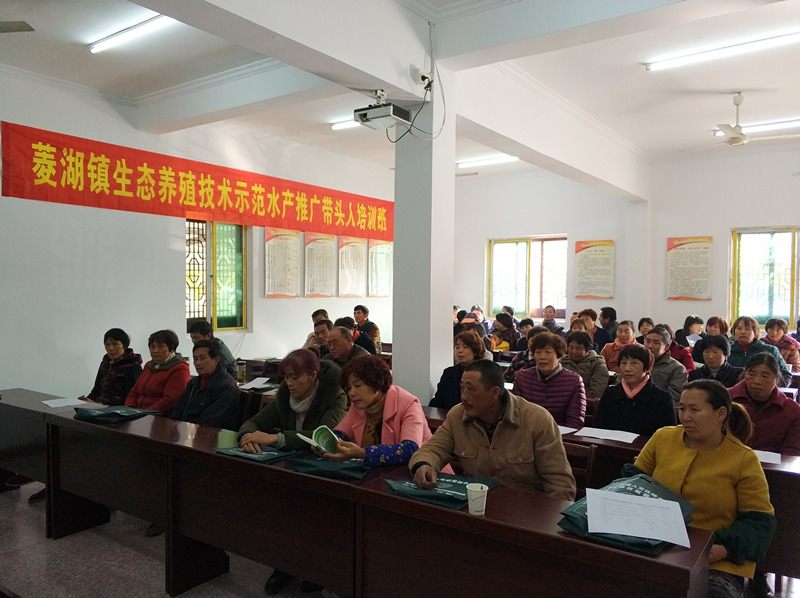 培训班邀请了湖州市环农微生物技术研究所所长孙永生老师以及菱湖渔业协会会长水产工程师沈学能进行授课。授课内容包括无公害生态高效养殖增收、养殖水环境控制及改良措施,培育有益微生物、底质改良等知识, 病的综合防治技术、水产生态养殖技术,及池塘循环水水槽生态流水养殖技术。组织生态养殖技术示范水产推广带头人培训班学员参观了渔业协会鱼类标本室及盛江家庭农场,与养殖户进行交流。