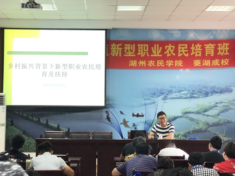 本次培训班特邀湖州市农业农村局水产技术推广站站长周志金、教授级高工沈乃峰、高级工程师劳顺健、浙大南太湖农推联盟徐海圣教授、浙江省淡水研究所副所长沈锦玉研究员、胡廷尖研究员、周志明教授级高工等8位在水产方面的专家老师及水产创业典型金淑斌就新型职业农民政策、法律、法规及水产养殖相关专业知识进行讲解。培训对象主要来自自主报名加审核、镇渔业协会推荐和市、区农业局推荐,成员包括水产养殖大户、水产合作社骨干成员、家庭农场主等。由于宣传发动充分和到位,市、区给的40个名额超额完成,最后经过筛选,确定了48位学员作为本次培训的对象。