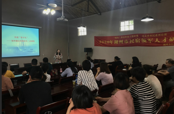 为进一步践行“两山”理念,贯彻落实乡村振兴战略决策部署,充分发挥湖州市乡村资源优势,提升农家乐(民宿)经营管理水平和服务质量。湖州农民学院于6月15-19日在埭溪镇虎潭山居举办“两山”理念转化主题培训暨湖州市民宿领军人才研修班。来自三县两区43名学员参加了此次培训。