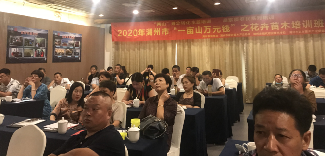 为深入践行“两山”理念,推动乡村振兴战略实施,加快培养和造就一批花卉苗木产业领军人才,推动湖州市花卉苗木产业高质量发展,2020年7月13日,由湖州农民学院、湖州市花卉苗木产业协会和湖州市现代农业技术学校共同举办的“两山”理念转化主题系列培训暨湖州市“一亩山万元钱”之花卉苗木培训班在安吉顺利开班。湖州市自然资源和规划局副调研员徐东方、湖州职业技术学院继续教育学院副院长郑昱、湖州市花卉苗木产业联盟、安吉县自然资源和规划局、湖州市花卉苗木产业协会等相关领导出席开班仪式。