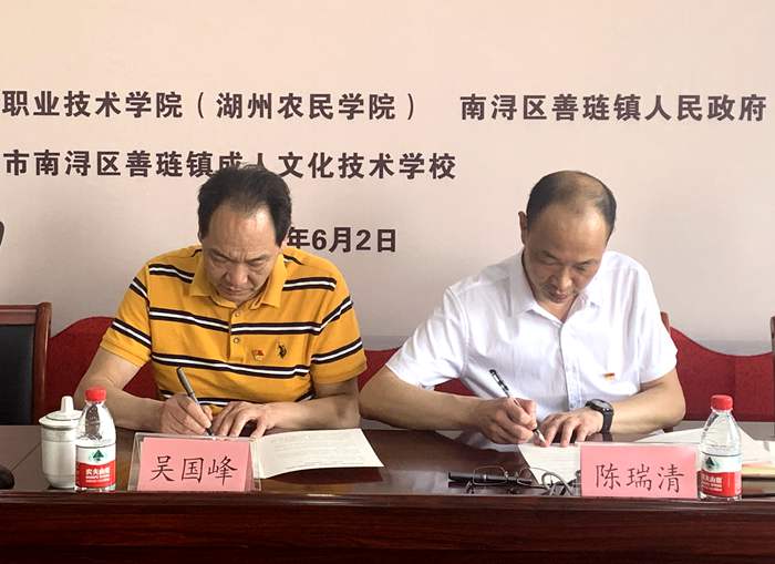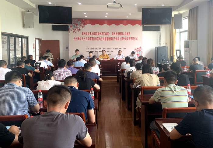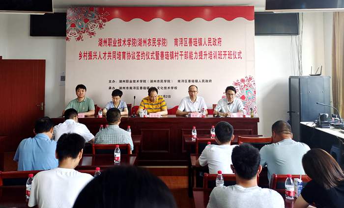 为深化校镇合作模式、推进共同富裕,6月2日上午,湖州职业技术学院(湖州农民学院)与南浔区善琏镇人民政府乡村振兴人才共同培育协议签约仪式暨善琏镇村干部能力提升培训班开班仪式在善琏镇成人文化技术学校二楼报告厅顺利举行。善琏镇人大主席陈瑞清、善琏镇副镇长余溢,继续教育学院院长、农民学院办公室主任吴国峰、善琏镇成人文化技术学校校长谢新红等相关领导出席签约仪式,来自善琏镇15个行政村的村两委干部70余人参加培训。