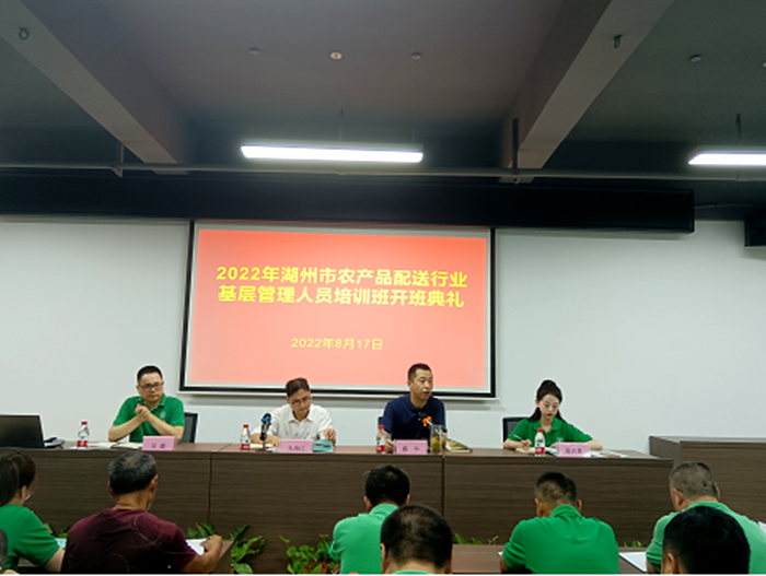 为深度推进校企合作、助企纾困,8月17日上午,由湖州农民学院、湖州高新职业技能培训中心、湖州莼鲈生态农业发展有限公司共同举办的2022年湖州市农产品配送行业基层管理人员(农村实用人才)培训班在湖州莼鲈生态农业发展有限公司二楼会议室顺利开班。湖州职业技术学院(湖州农民学院)继续教育学院副院长盛华,湖州市吴兴区供销社党组副书记、副主任朱海江,湖州莼鲈生态农业发展有限公司总经理吴震等出席开班仪式。